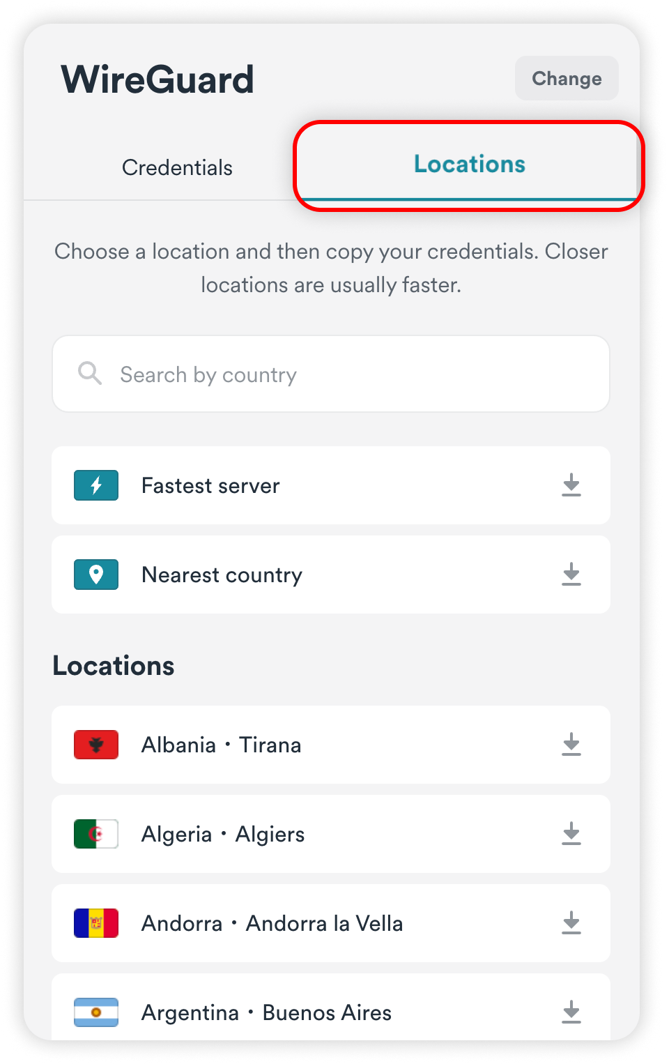 Head to the Locations tab and locate the server that you wish to connect to.