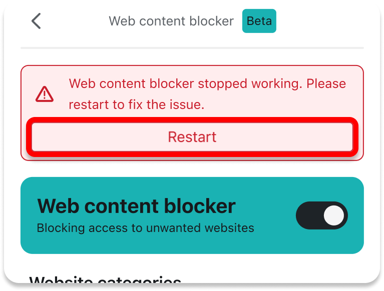 Web content blocker Service Interrupted by the OS