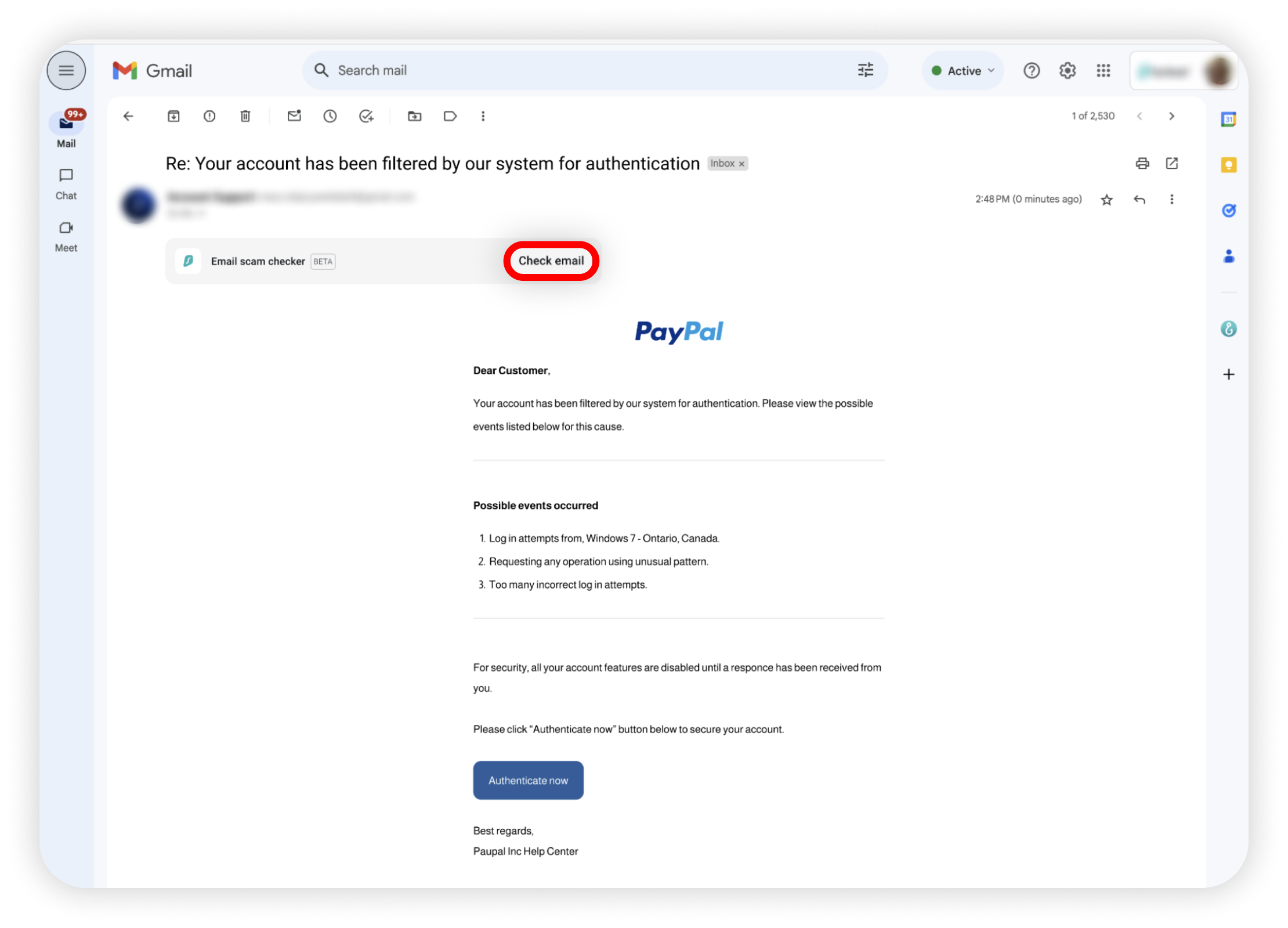 Note: The Email scam checker currently works exclusively with Gmail when accessed at mail.google.com.