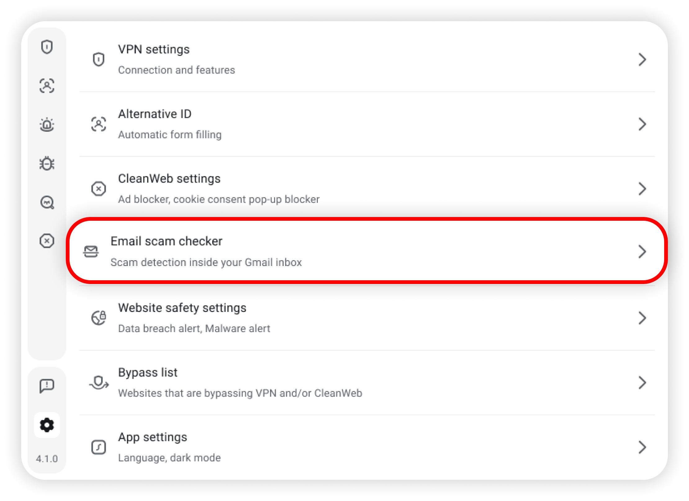 Here's how to enable or disable the Surfshark email scam checker: