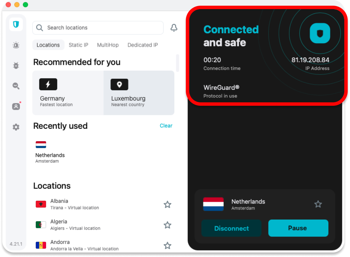 Follow the guidelines below to ensure that your Surfshark VPN connection is properly established and working as expected.
