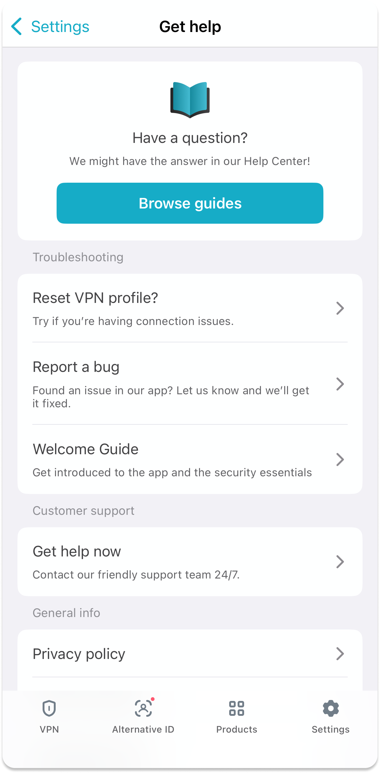 Open the Products tab in your Surfshark app, where you will find two Surfshark products. To use them, you have to have an active Surfshark ONE subscription: