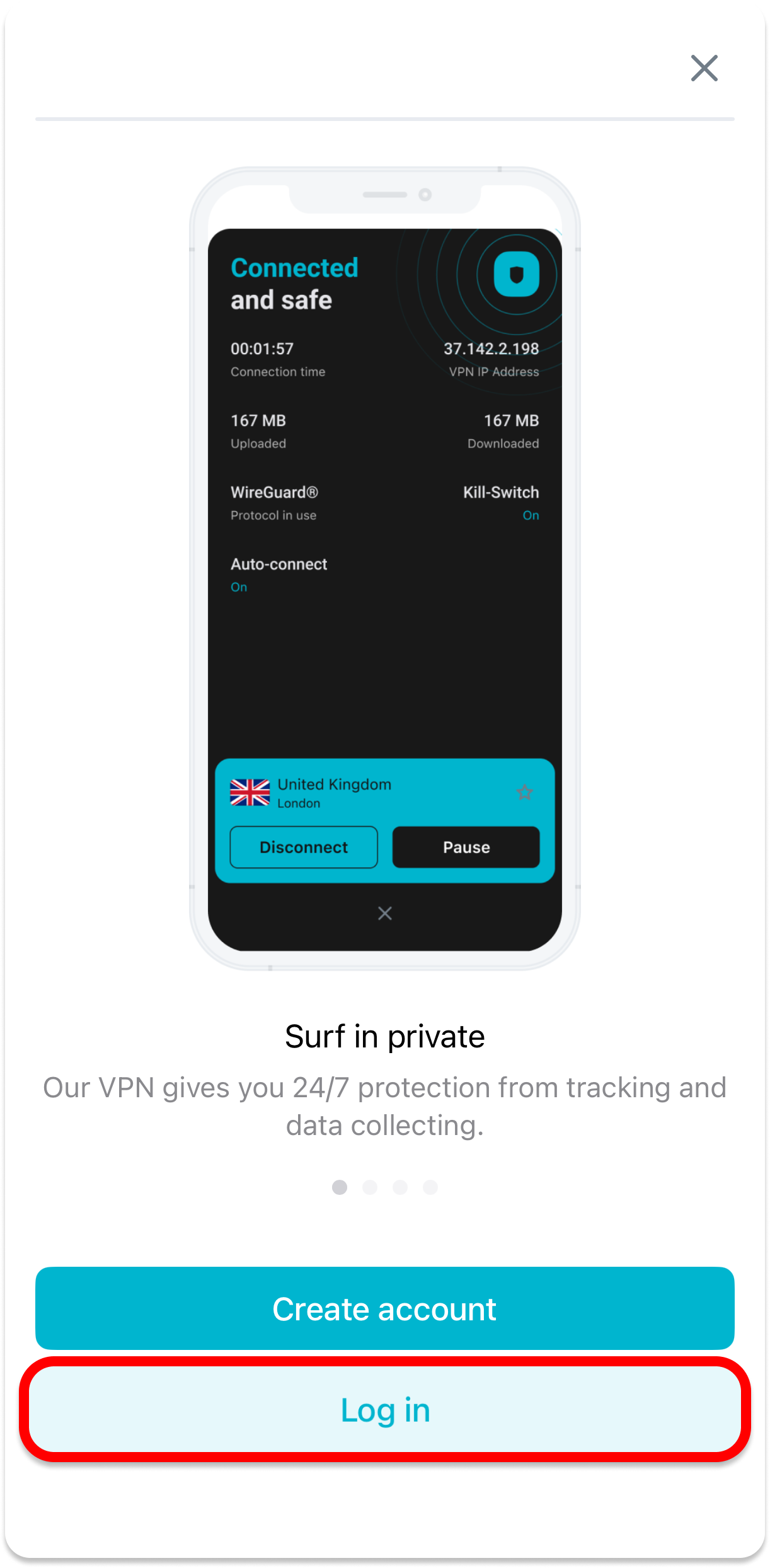 Connect to one of Surfshark's servers. You can simply tap the quick-connect button, and the app will connect you to the fastest server available: