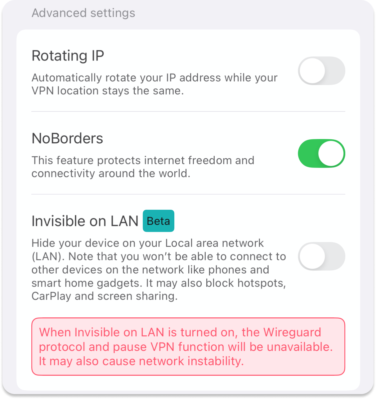 - Enable Rotating IP. This feature changes your IP address to the chosen location every 5 to 10 minutes without disconnecting from the VPN.