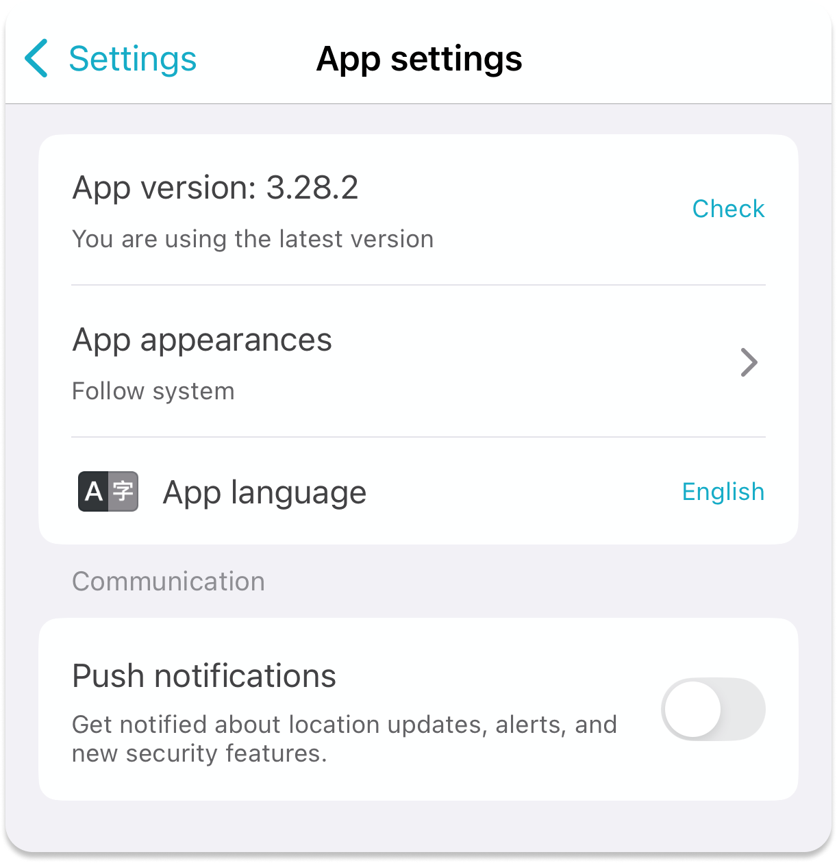 - Change the App's appearance (dark, light, or one that follows your device's theme).