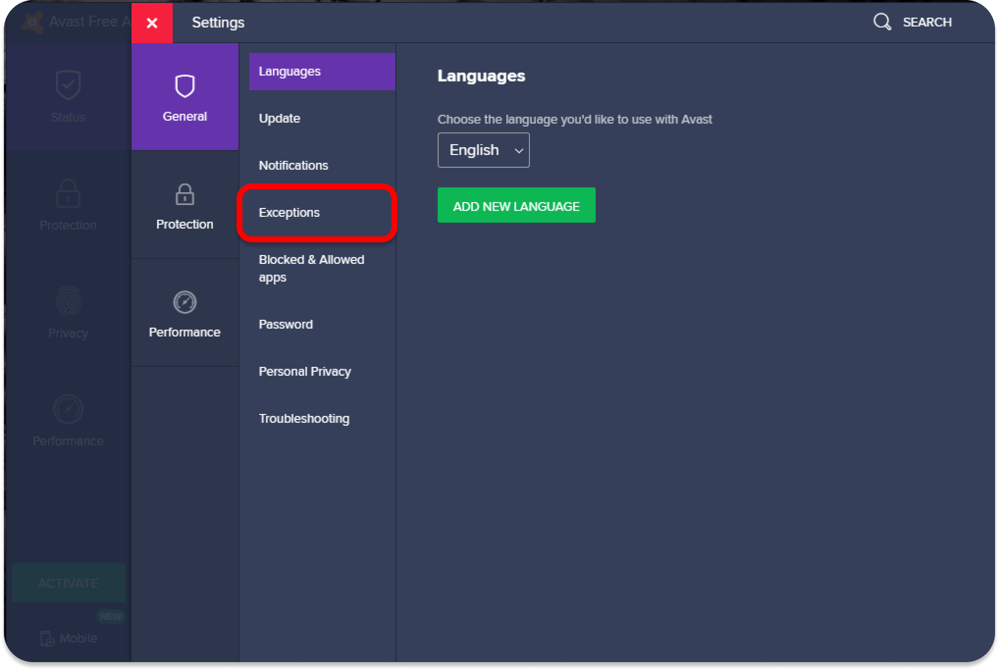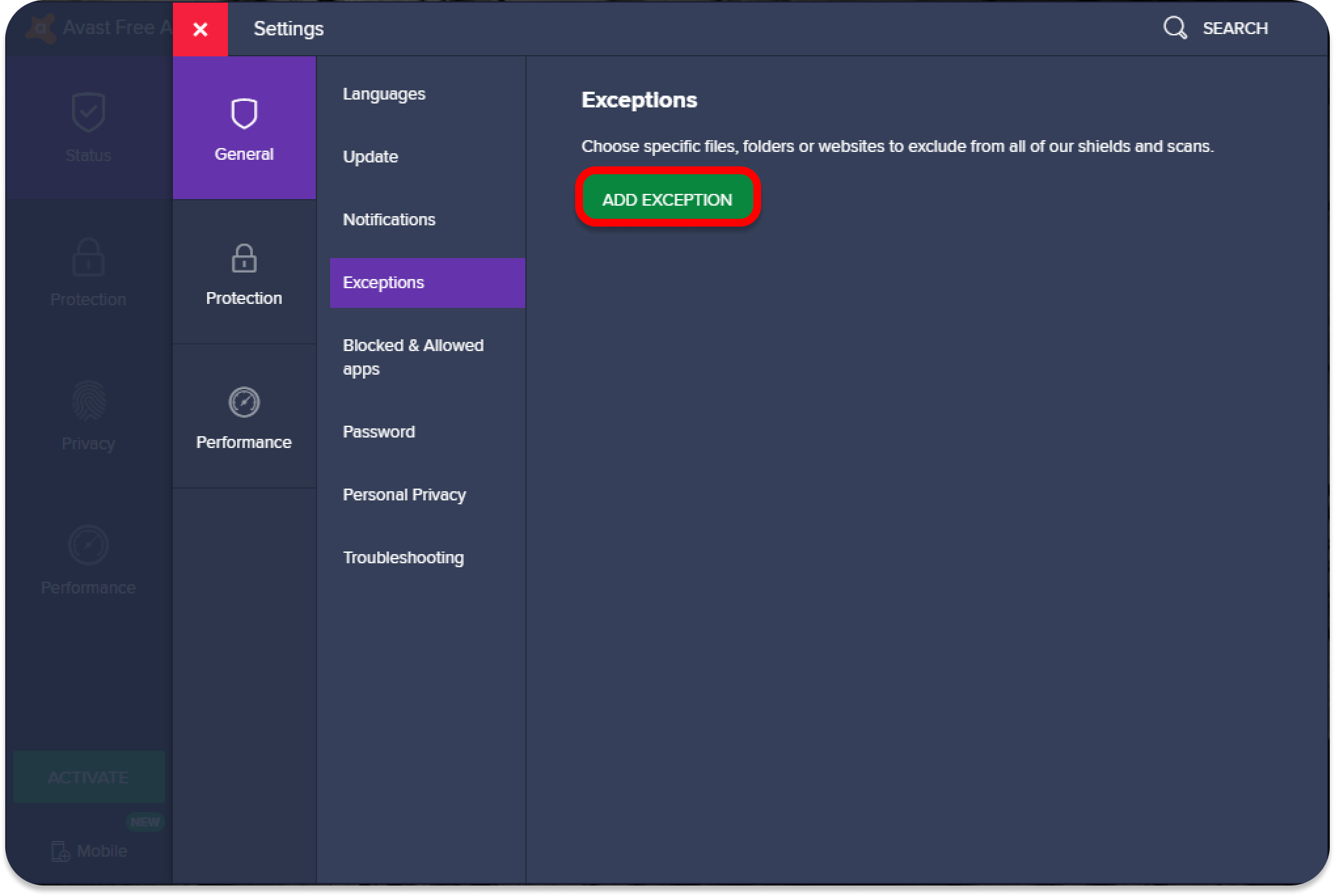Follow these steps to make an exception for Surfshark in Avira antivirus settings: