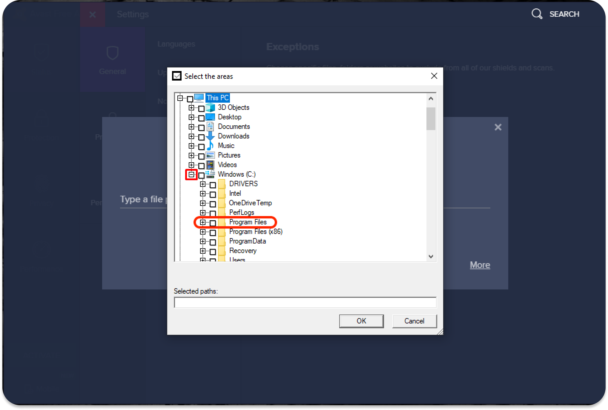 - In the Program Files folder, find and check the Surfshark folder. Click OK.