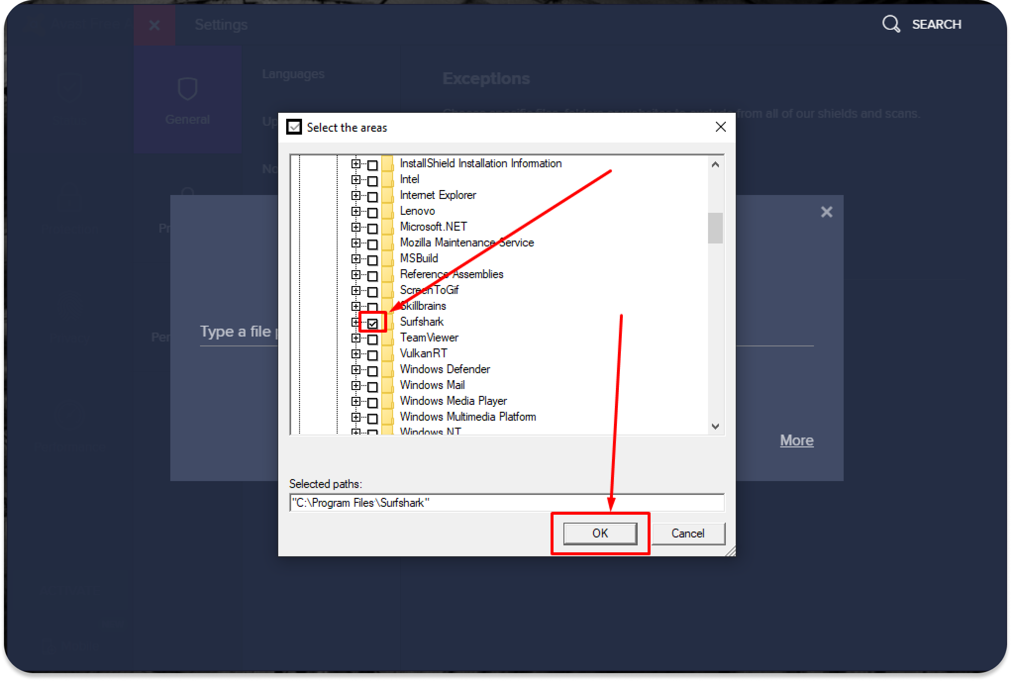 - Now, the Surfshark application is excluded from Avast scans.