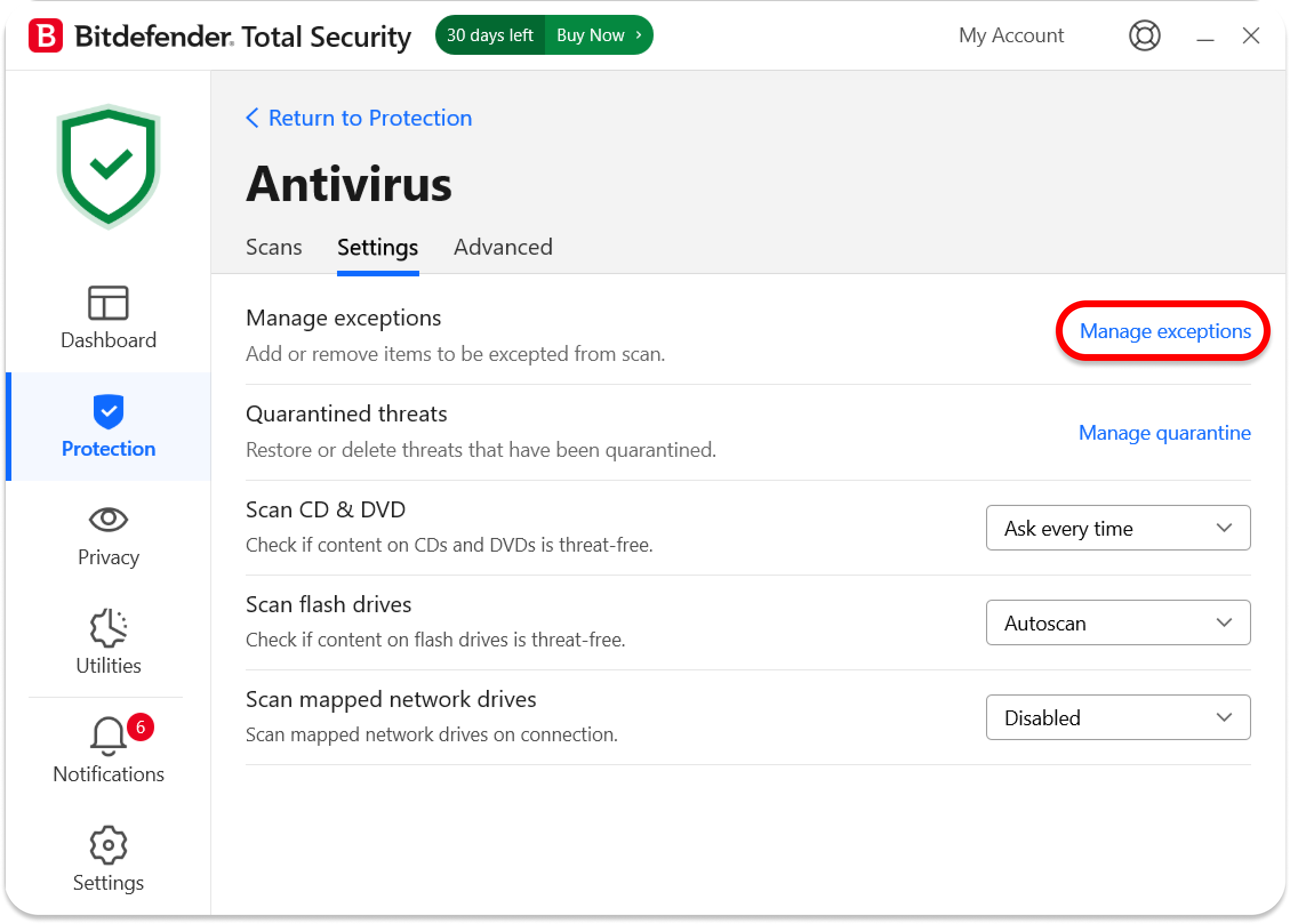 To make an exception for Surfshark in BitDefender antivirus settings, follow these steps: