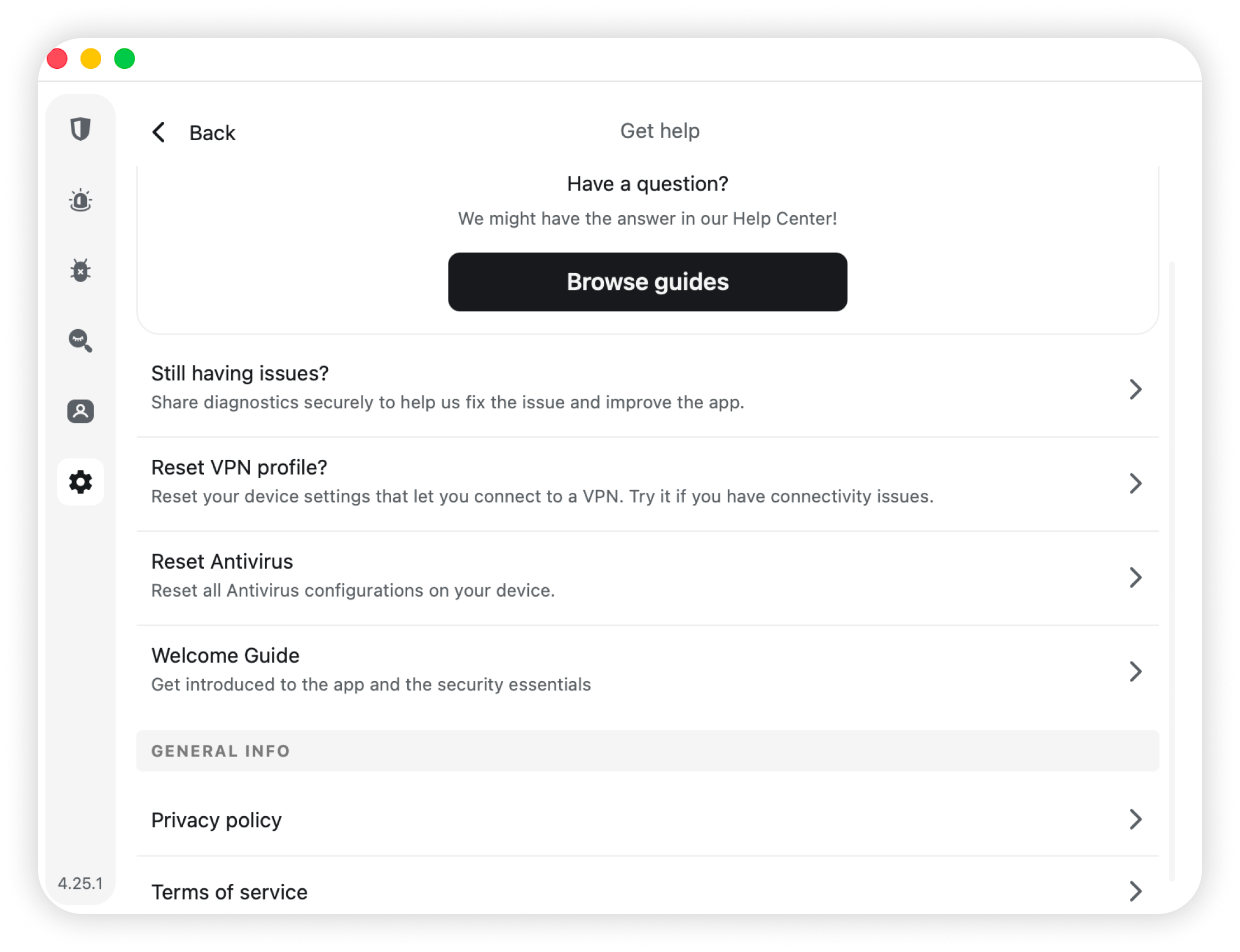 In the Get help section, you can find support resources.