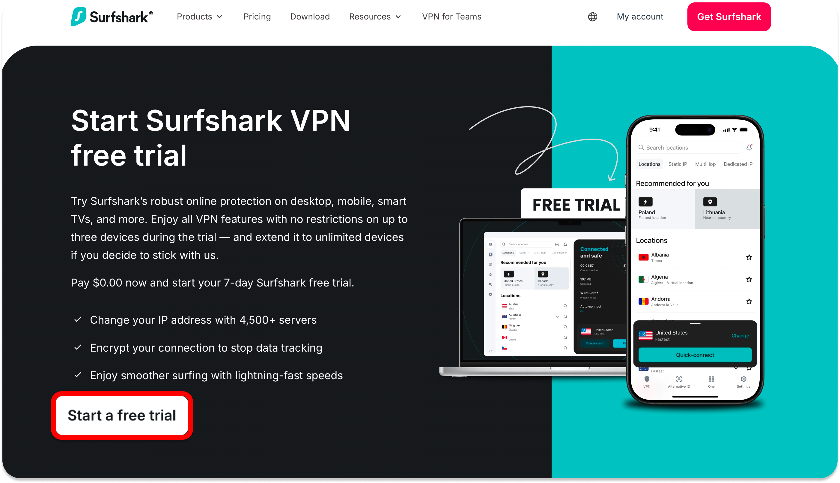 Navigate to Surfshark VPN free trial page and click on Start free trial.