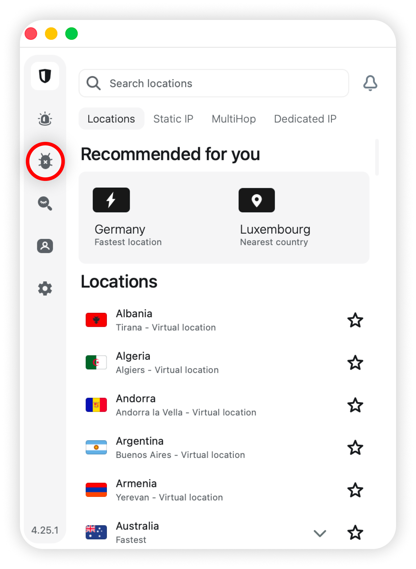 NOTE: Surfshark Antivirus is available only in the .DMG version downloaded from our official website and is not supported in the App Store version of the Surfshark app.