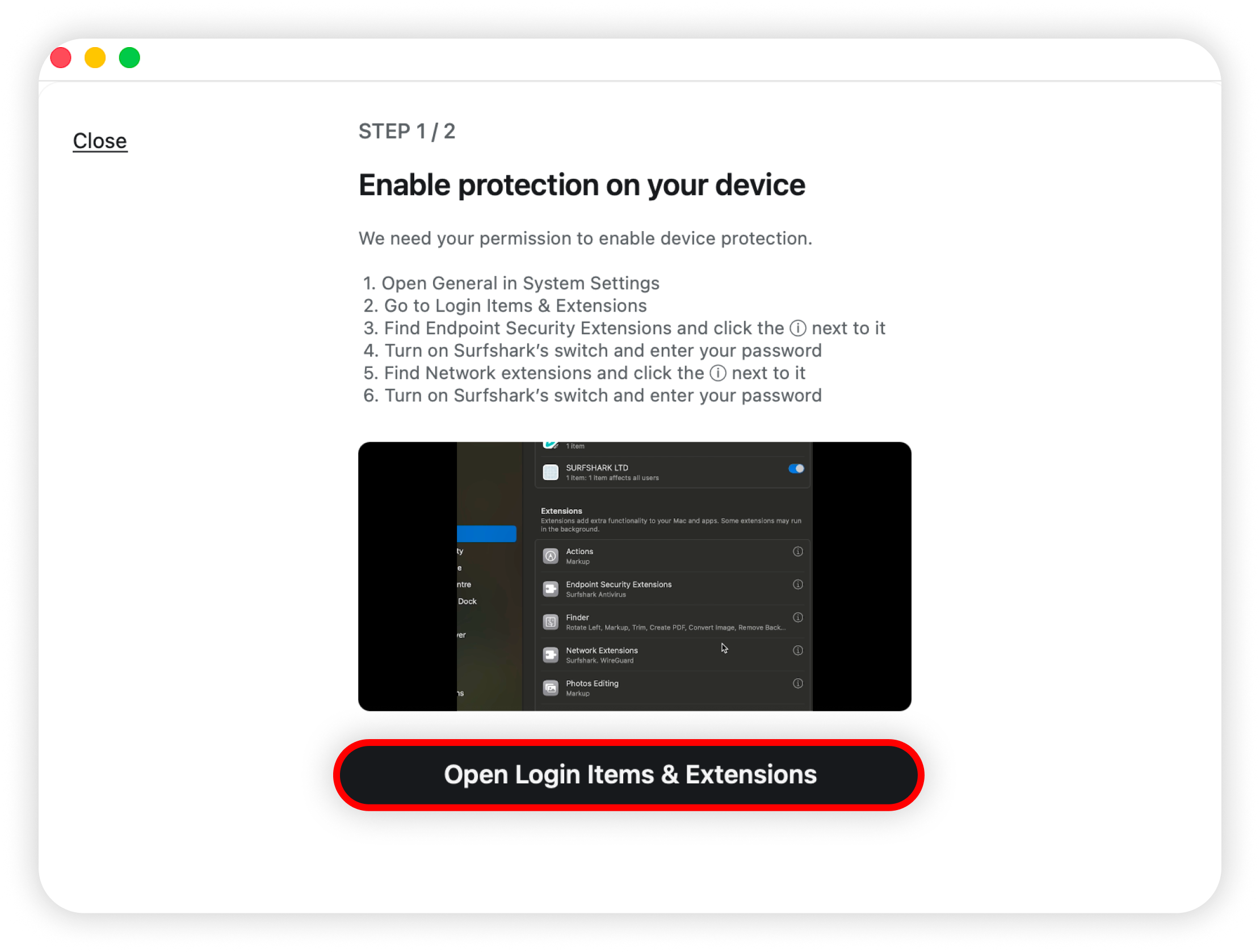 3. Click Open Login Items & Extensions and follow the on-screen instructions: