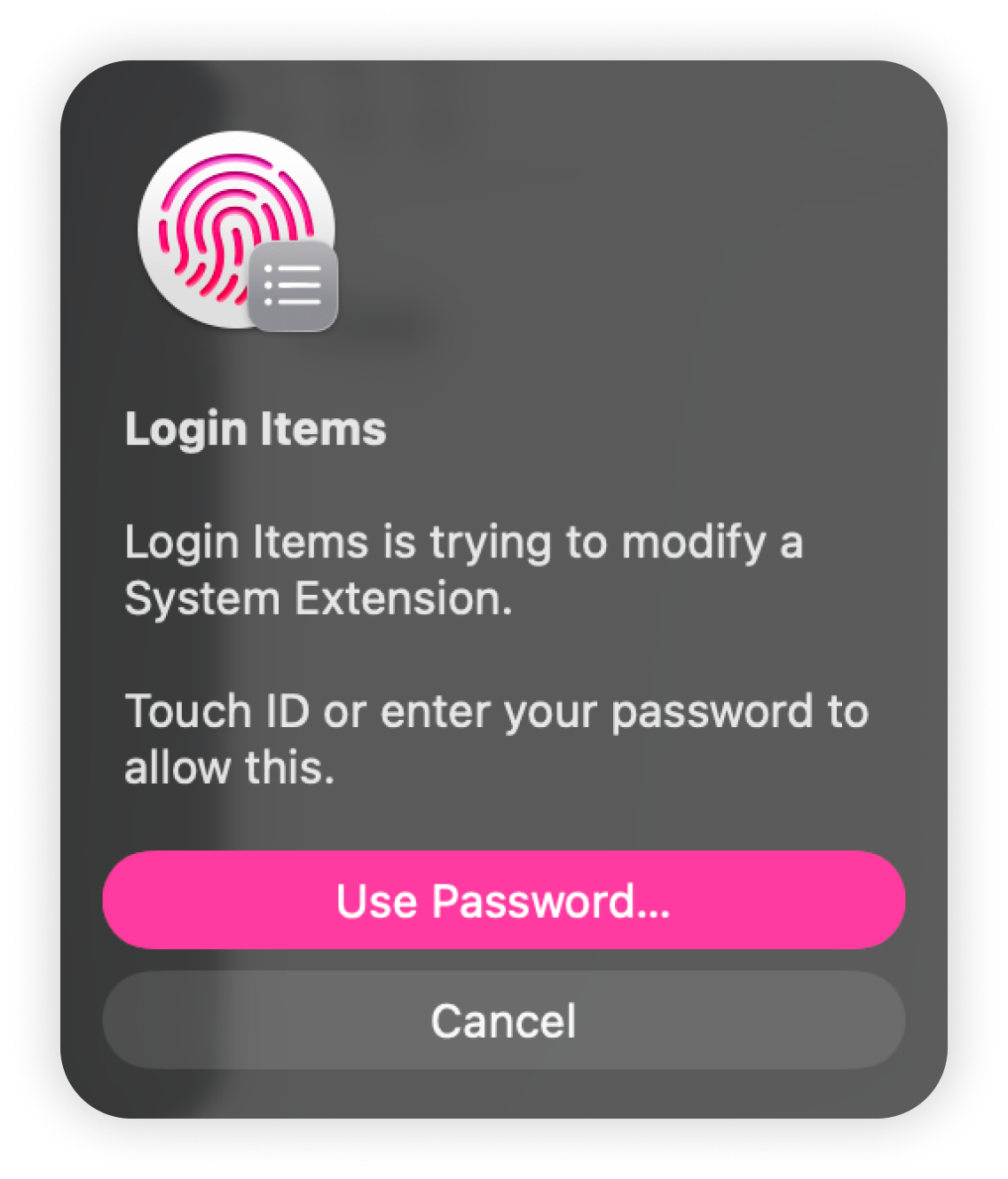4. Use your Touch ID or enter your Mac’s password to approve the changes: